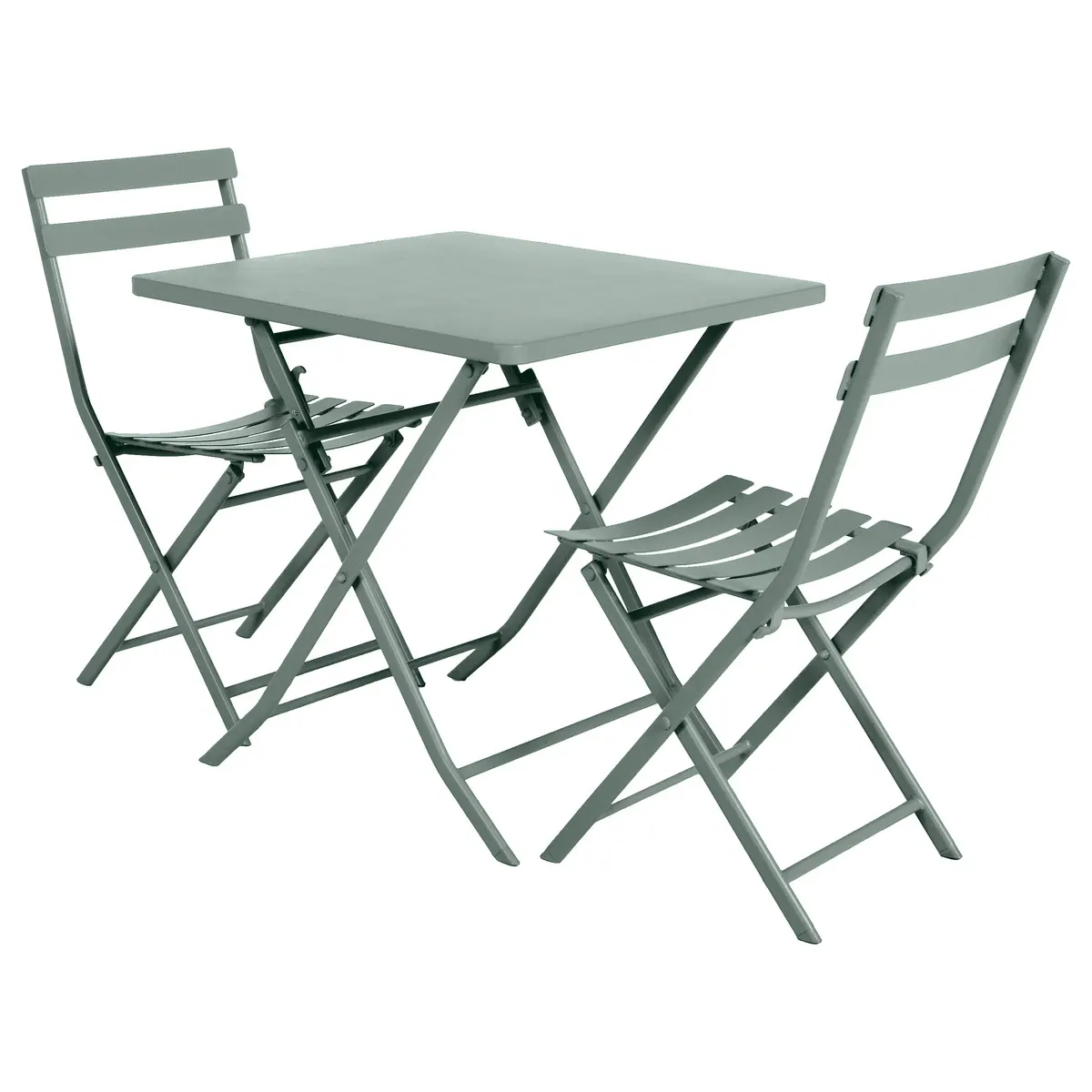 Stolik ogrodowy Greensboro z krzesłami tworzy idealny zestaw. Połącz go z dwoma pasującymi stalowymi krzesłami składanymi z tej samej kolekcji, aby uzyskać spójny i stylowy wygląd.