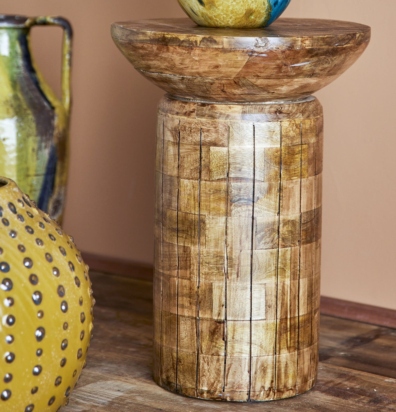 Stolik pomocniczy drewniany Yasme jest niezwykle wszechstronny – sprawdzi się w salonie, sypialni, przedpokoju, a nawet w gabinecie jako praktyczne miejsce do odłożenia drobiazgów. Ręcznie rzeźbiona struktura sprawia, że każdy egzemplarz jest unikatowy – żaden stolik boczny z drewna mango nie wygląda identycznie, co czyni go wyjątkowym elementem dekoracyjnym.