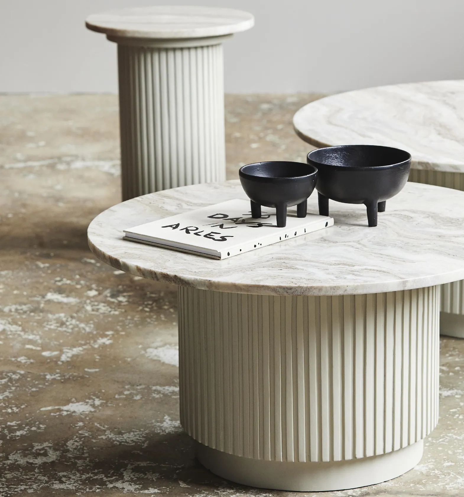 Stolik pomocniczy marmurowy blat Erie Ivory Ø40 - Nordal