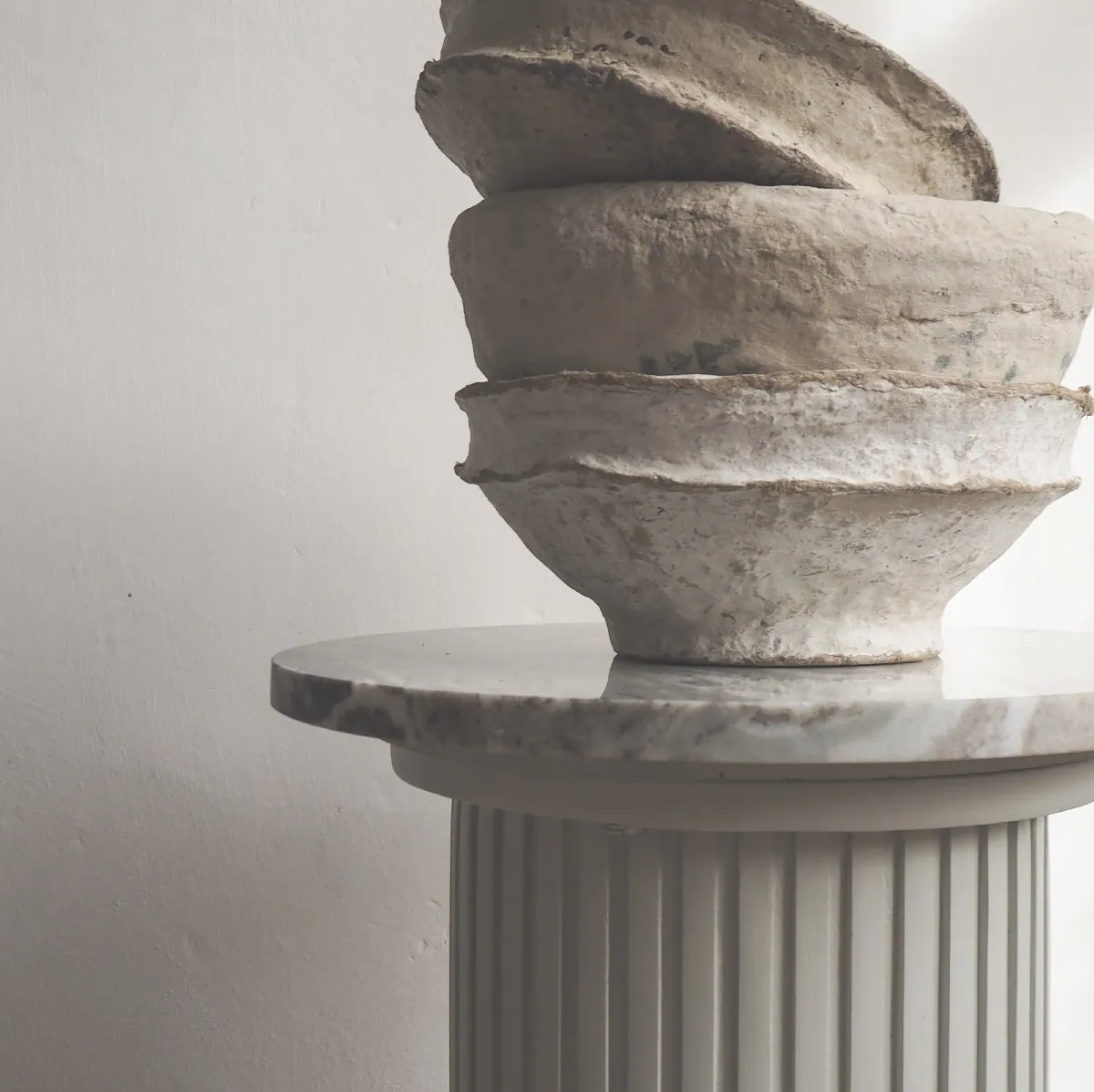 Blat okrągłego stolik pomocniczego na jednej nodze wykonany jest z wyjątkową starannością, z zachowaniem naturalnej struktury kamienia marmuru, dzięki czemu każdy egzemplarz stolika jest unikalny i posiada swoją indywidualną, niepowtarzalną osobowość. Głównym kolorem bazowym marmuru jest kość słoniowa łącząca biel z zabarwieniem beżu, a różnorodność ciemniejszych odcieni beżu i brązu nadaje każdemu stolikowi pomocniczemu naturalnego i niepowtarzalnego piękna, które jest nie do podrobienia.