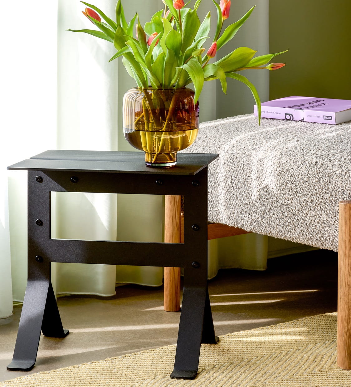 Kolor wnosi do wnętrza elegancję i nowoczesną stylistykę, a żelazna konstrukcja zapewnia wieloletnią trwałość. Stolik pomocniczy składany Fold sprawdza się w aranżacjach minimalistycznych, skandynawskich, loftowych i nowoczesnych. Jest dodatkiem, który nie tylko spełnia swoją funkcję, ale również podnosi estetykę przestrzeni, tworząc miejsce, które zachęca do odpoczynku i codziennych rytuałów.