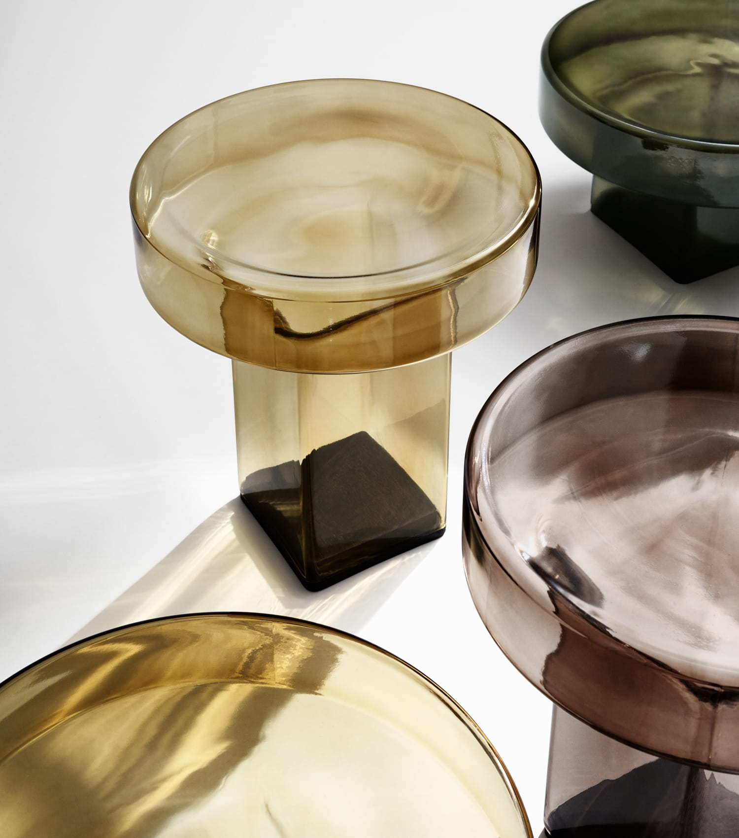 Każdy szklany stolik boczny Naked wykonywany jest z pojedynczego kawałka szkła dmuchanego ustami. Po uformowaniu szkło jest hartowane, precyzyjnie przycinane u podstawy i malowane od wewnątrz, aby zabezpieczyć kolor przed ścieraniem. Gładka powierzchnia zewnętrzna pozostaje przyjemna w dotyku, a drobne pęcherzyki powietrza lub minimalne różnice grubości są naturalnym efektem rzemieślniczego procesu i potwierdzają unikalność produktu.