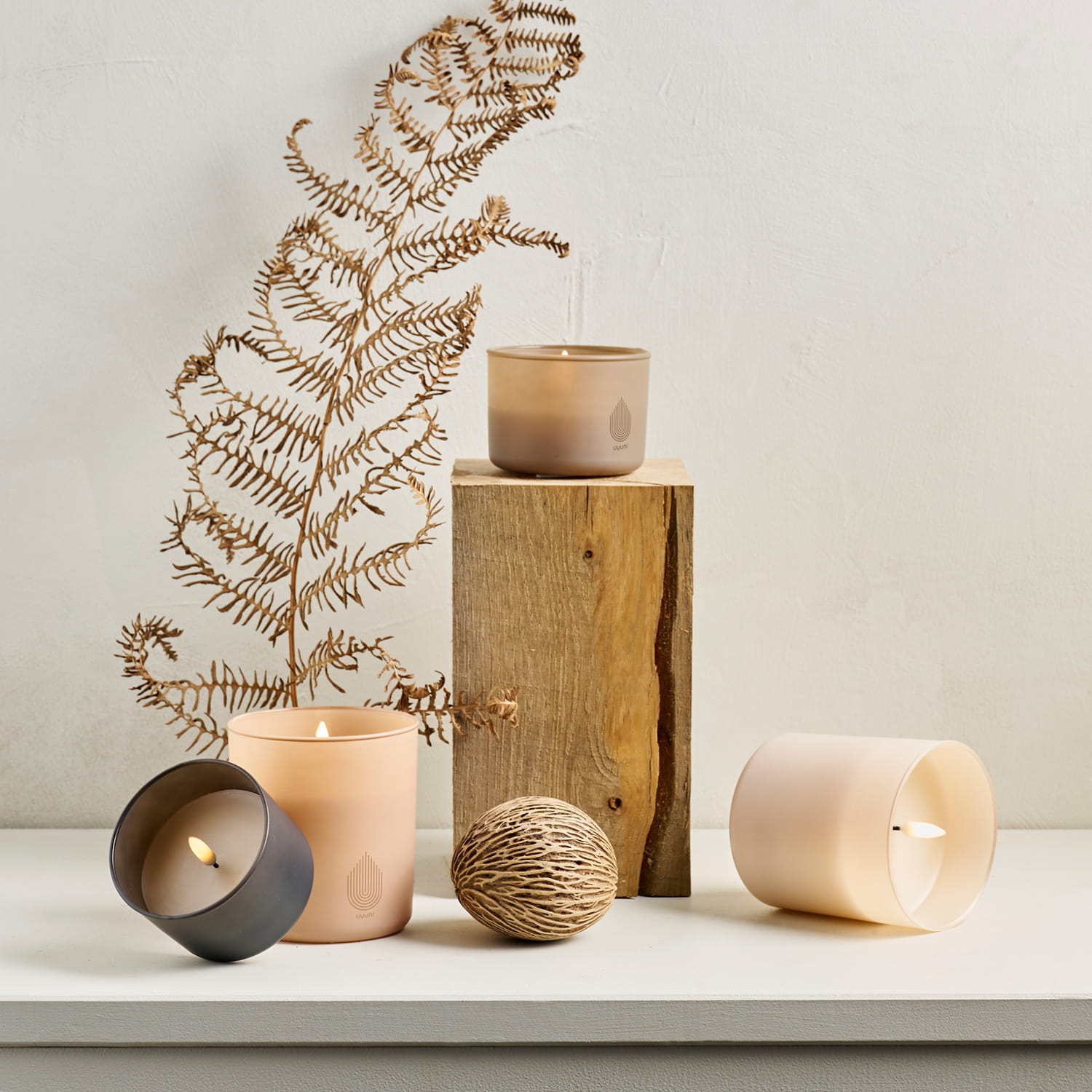 Świeca w szkle na baterie LED z ruchomym płomieniem do salonu, sypialni, holu i łazienki, wykonana z prawdziwego wosku parafinowego i zamknięta w eleganckim szklanym pojemniku, to bezpieczne i realistyczne źródło światła nastrojowego do wnętrz. Technologia Signature Flicker™ wiernie imituje naturalny ruch płomienia, tworząc ciepłą, delikatną poświatę bez ognia, dymu i zapachu. To świeca LED w szkle do domu premium, która daje efekt klasycznej świecy dekoracyjnej, ale działa nowocześnie i bezobsługowo. Idealna tam, gdzie liczy się atmosfera – a tradycyjna świeca byłaby problemem.