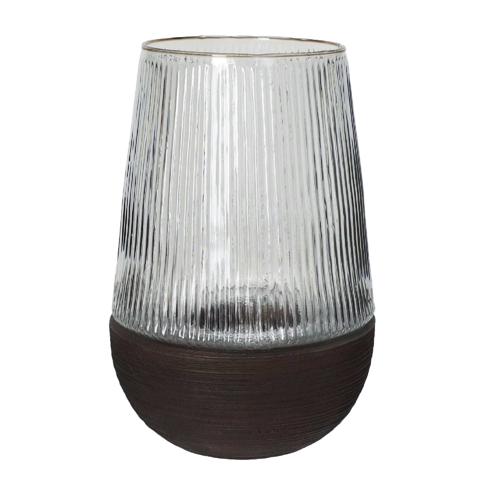 Świecznik drewniany duży ze szklanym kloszem Arbre 33, ciemnobrązowy - Pomax