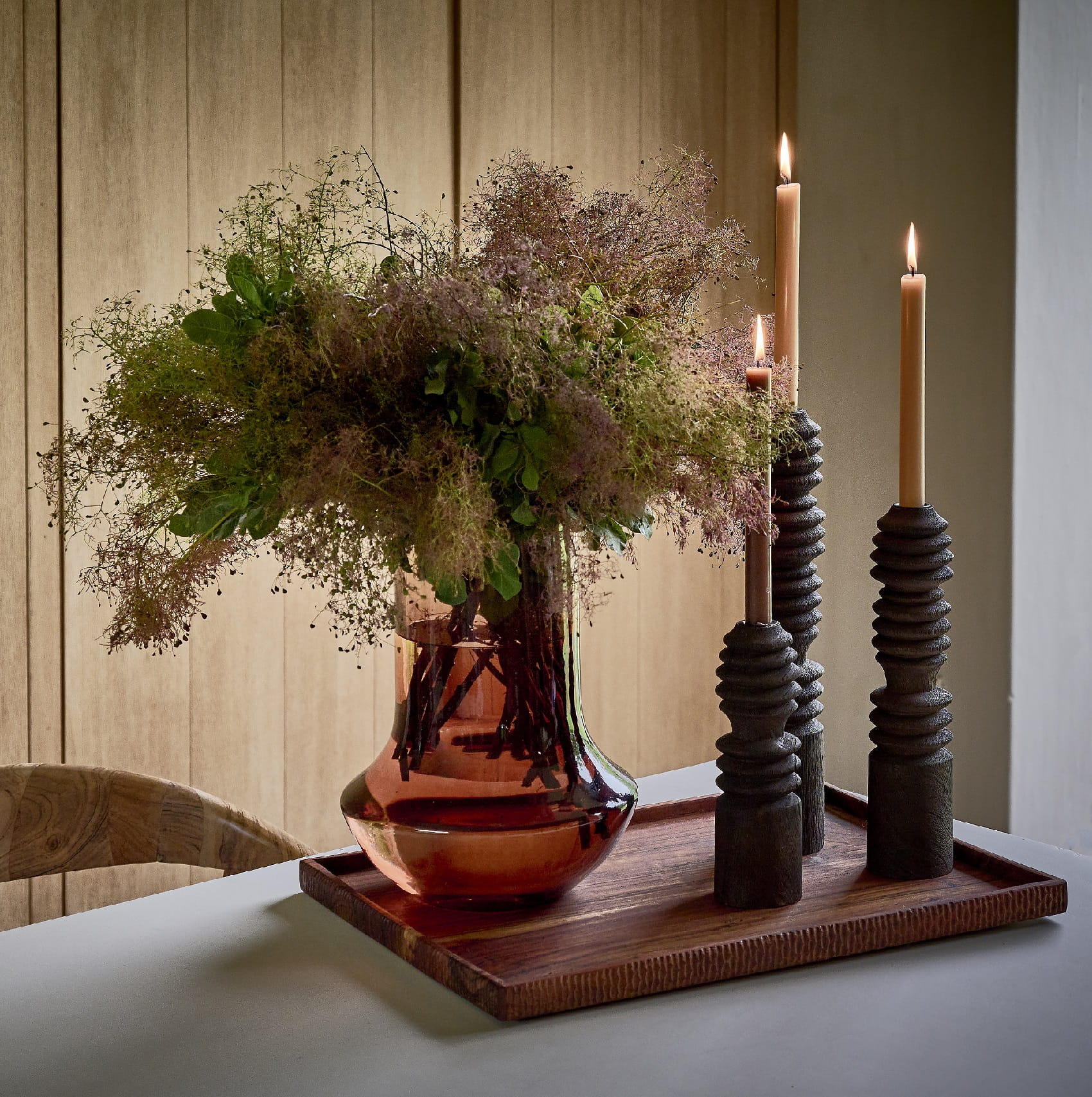 Ten dekoracyjny, wysoki świecznik na pojedynczą świecę stołową łączy w sobie nowoczesny design i rzemieślniczą duszę. Smukła forma sprawia, że świetnie odnajdzie się zarówno jako solista na konsoli czy komodzie, jak i w towarzystwie innych świeczników Rotello w różnych rozmiarach. Jego wysokość wraz z formą dodają mu elegancji, dzięki czemu natychmiast staje się centralnym punktem dekoracyjnym aranżacji – na stole w jadalni, w salonie, a nawet w sypialni, gdzie tworzy intymny, nastrojowy klimat.