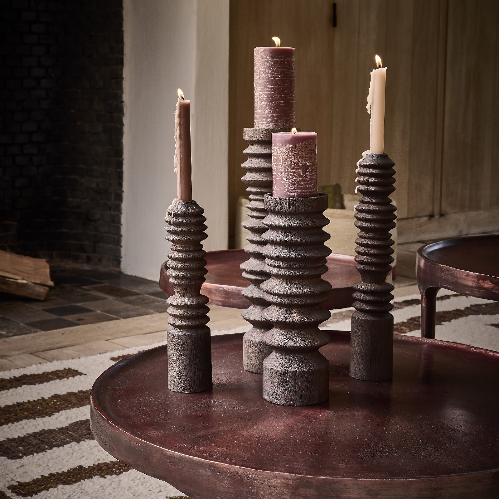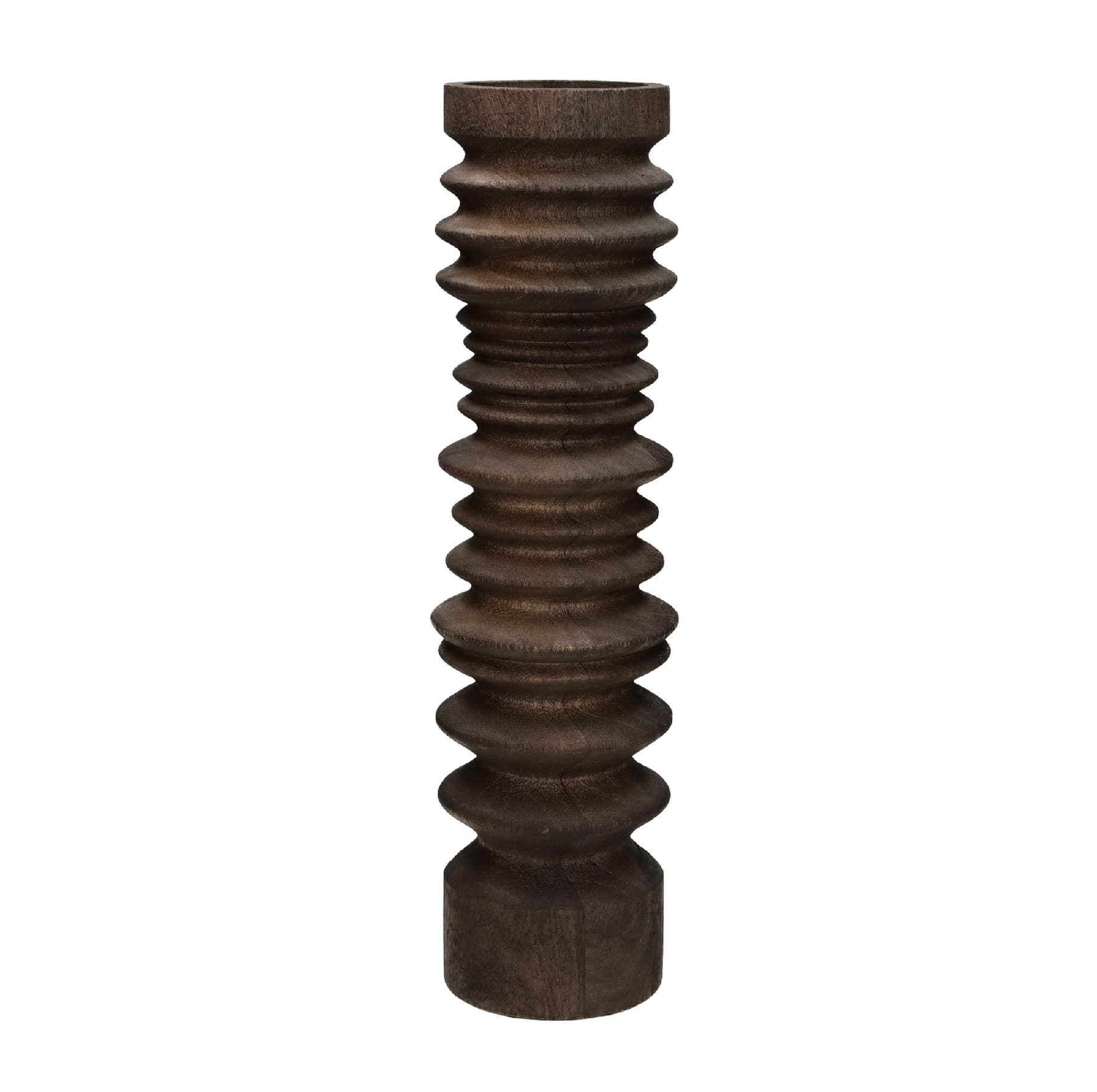 Świecznik drewniany wysoki na świecę walec Rotello Pomax to prawdziwa definicja luksusowego detalu, który od razu przyciąga uwagę i buduje wyjątkową atmosferę w domu. Wykonany z drewna mango, zachwyca solidnością i ręcznie rzeźbionymi detalami, które podkreślają jego unikatowy charakter. Eleganckie koncentryczne żłobienia tworzą hipnotyzującą formę, a ciepły brązowy odcień drewna wprowadza do wnętrza harmonię, elegancję i ponadczasowy styl.