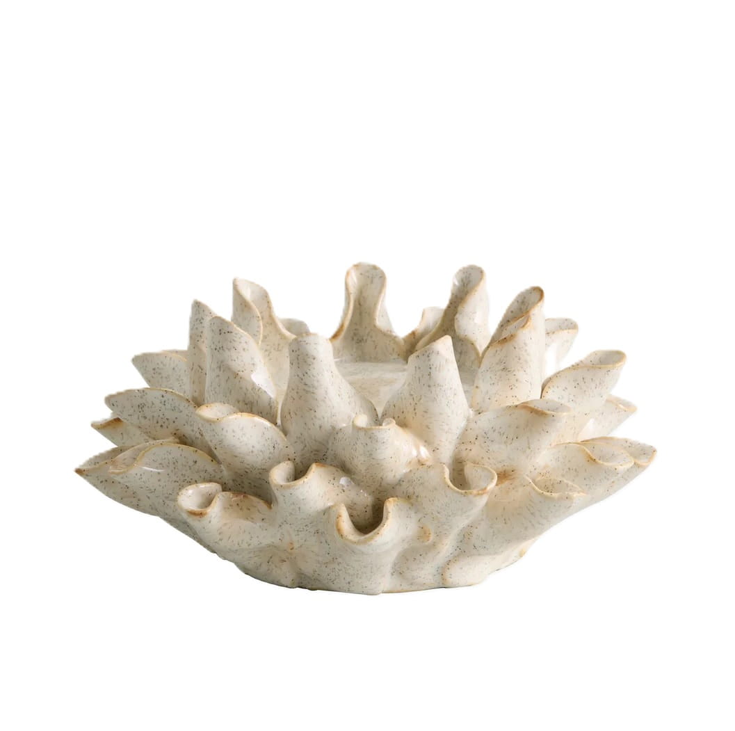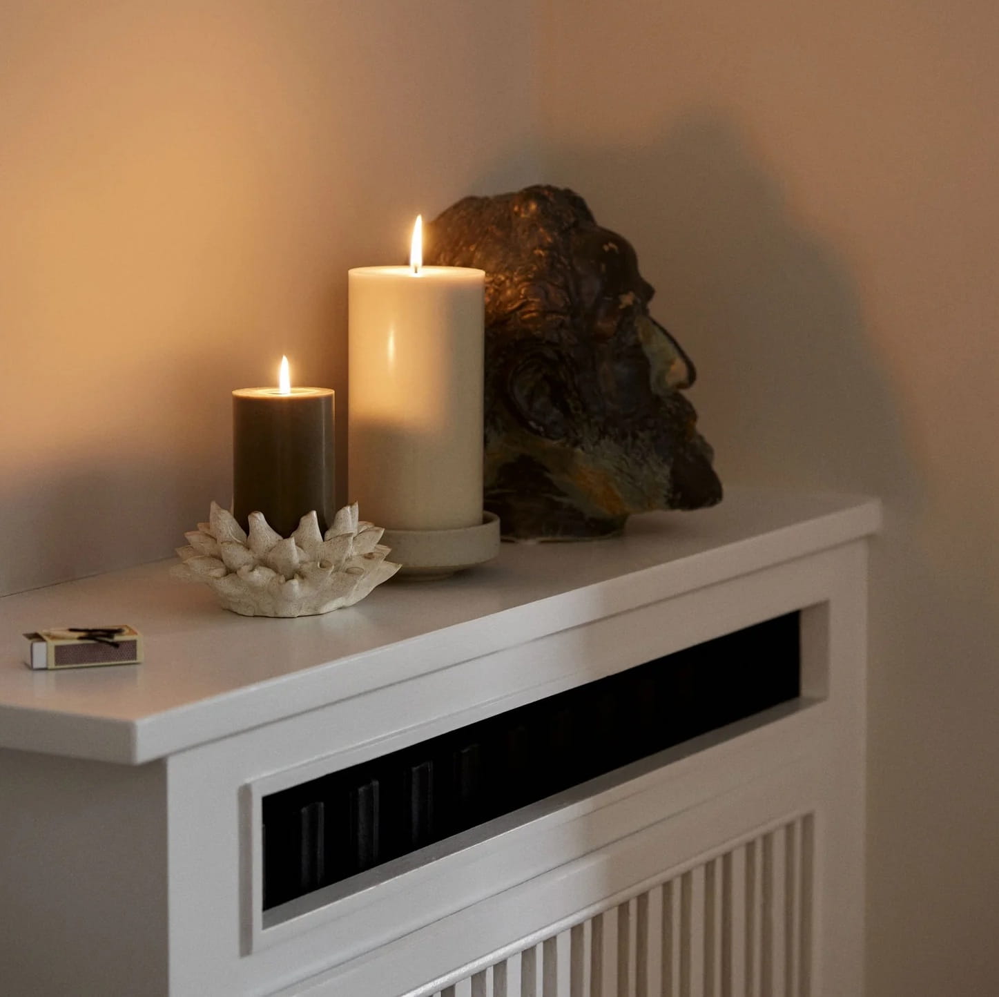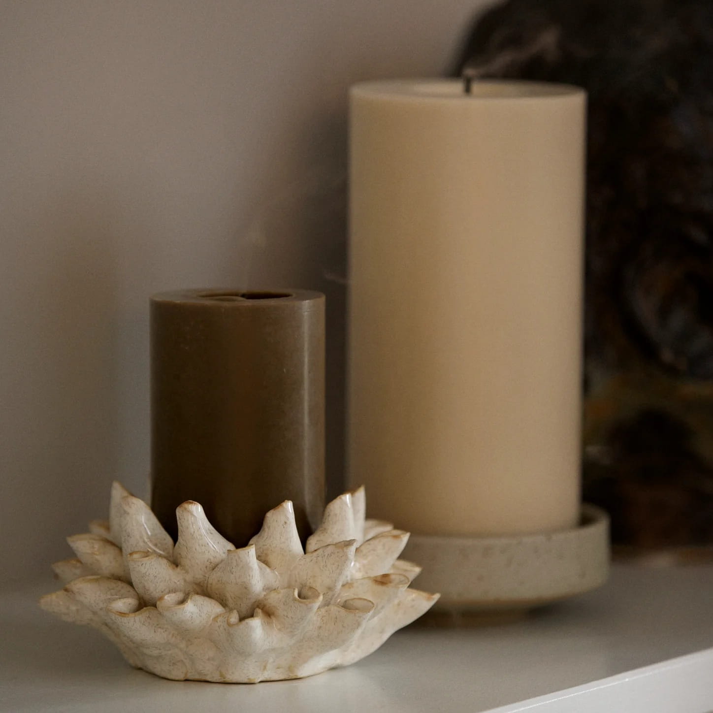 Świecznik na grubą świecę w kolorze kości słoniowej Natuna - rzeźbiarska forma, która przyciąga spojrzenia
