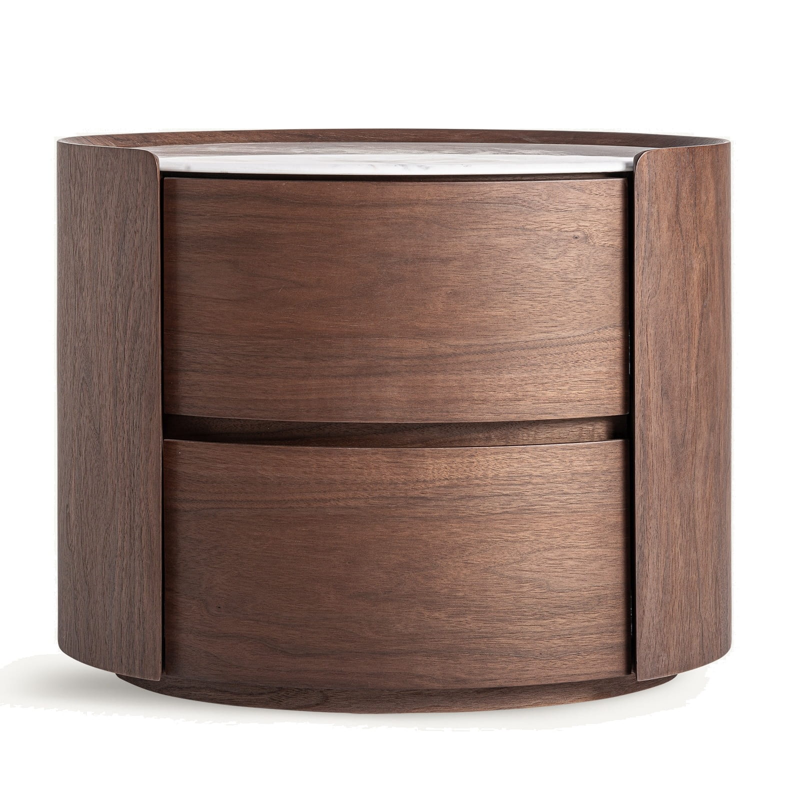 Szafka nocna z szufladami do sypialni z forniru dębowego i spieku kamiennego z kolekcji Stuetta marki VICAL to kompaktowy, elegancki mebel zaprojektowany z myślą o nowoczesnych sypialniach i wnętrzach premium. Połączenie jasnobrązowej sklejki, brązowego forniru dębowego oraz blatu z białego, żyłkowanego spieku kamiennego tworzy spójną, dopracowaną całość, która już w pierwszych sekundach komunikuje jakość materiałów i funkcjonalny charakter produktu. To szafka nocna, która łączy wygodne przechowywanie z estetyką konsekwentną z całą kolekcją Stuetta.