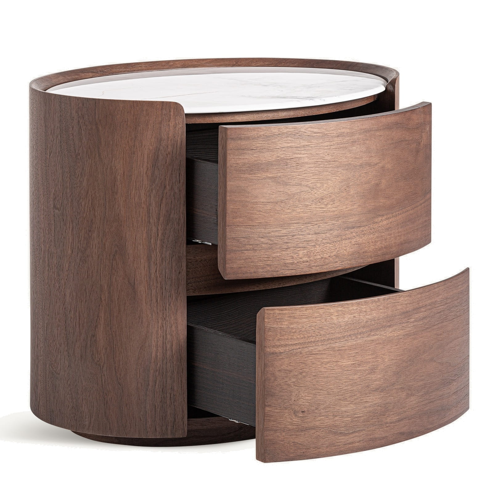 Bryła szafki nocnej Stuetta została zaprojektowana w oparciu o zaokrąglone linie, dzięki czemu mebel prezentuje się lekko, a jednocześnie stabilnie. Niewielkie proporcje sprawiają, że idealnie pasuje przy łóżku, nie zabierając przestrzeni i zachowując wizualną równowagę w aranżacji sypialni.