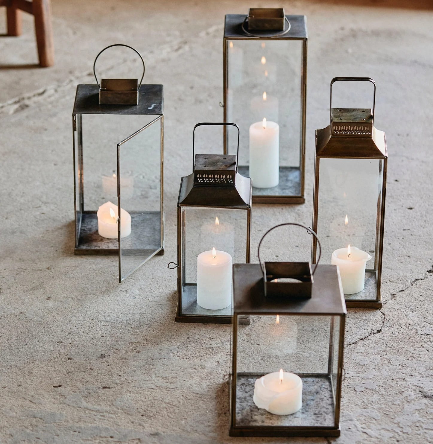 - postarzany lampion metalowo-szklany – efekt patyny i autentyczności