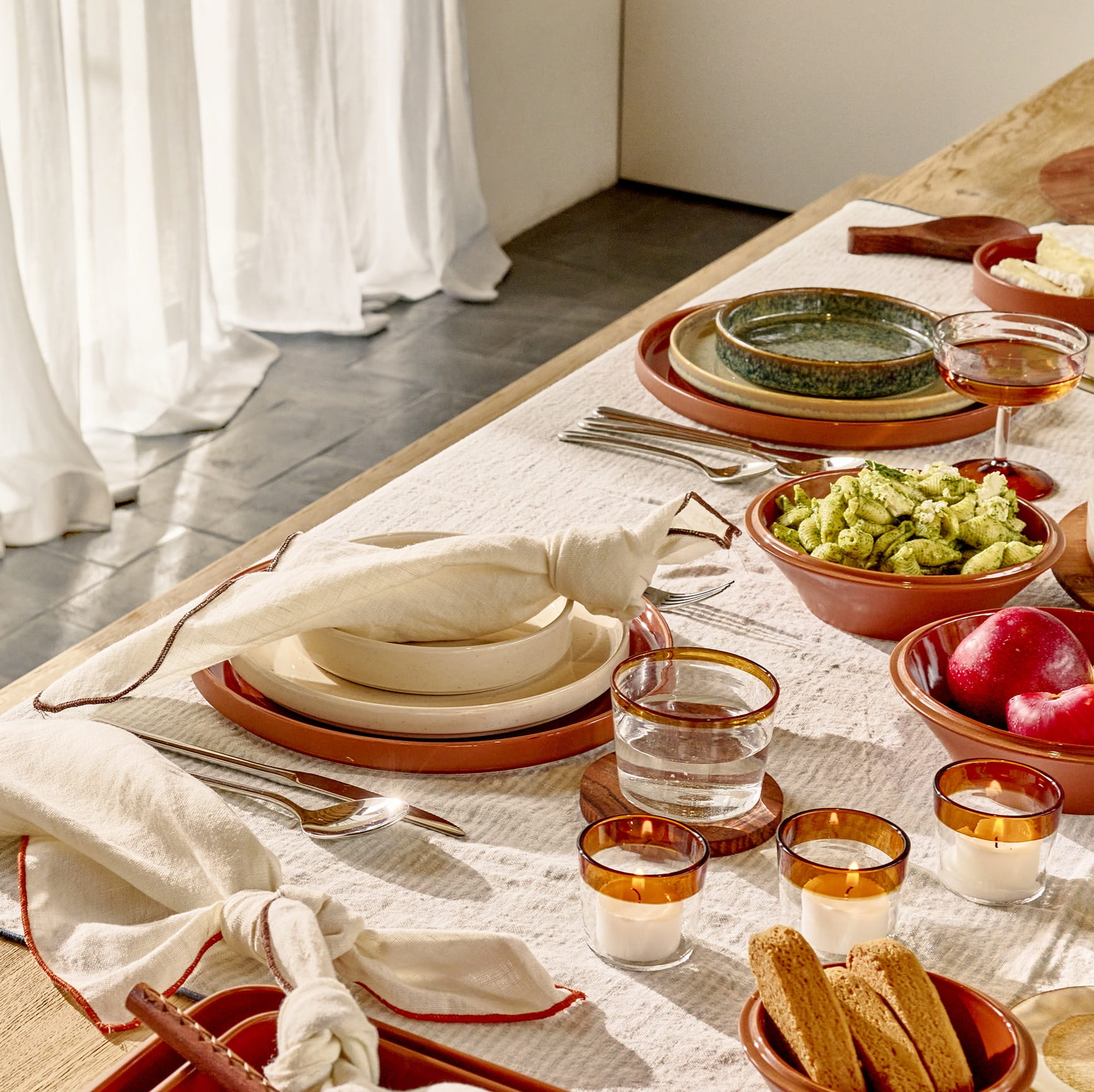 Kolekcja Rasa została wykonana z porcelany, odpornej na zarysowania, odpryski i wysokie temperatury. Dzięki temu naczynia są nie tylko piękne, ale i praktyczne – idealnie nadają się do używania w zmywarce, układania w stosy czy podawania gorących potraw prosto z piekarnika. Wysoki rant to dodatkowy atut, który pozwala bezpiecznie serwować dania, zachowując przy tym perfekcyjną prezentację.