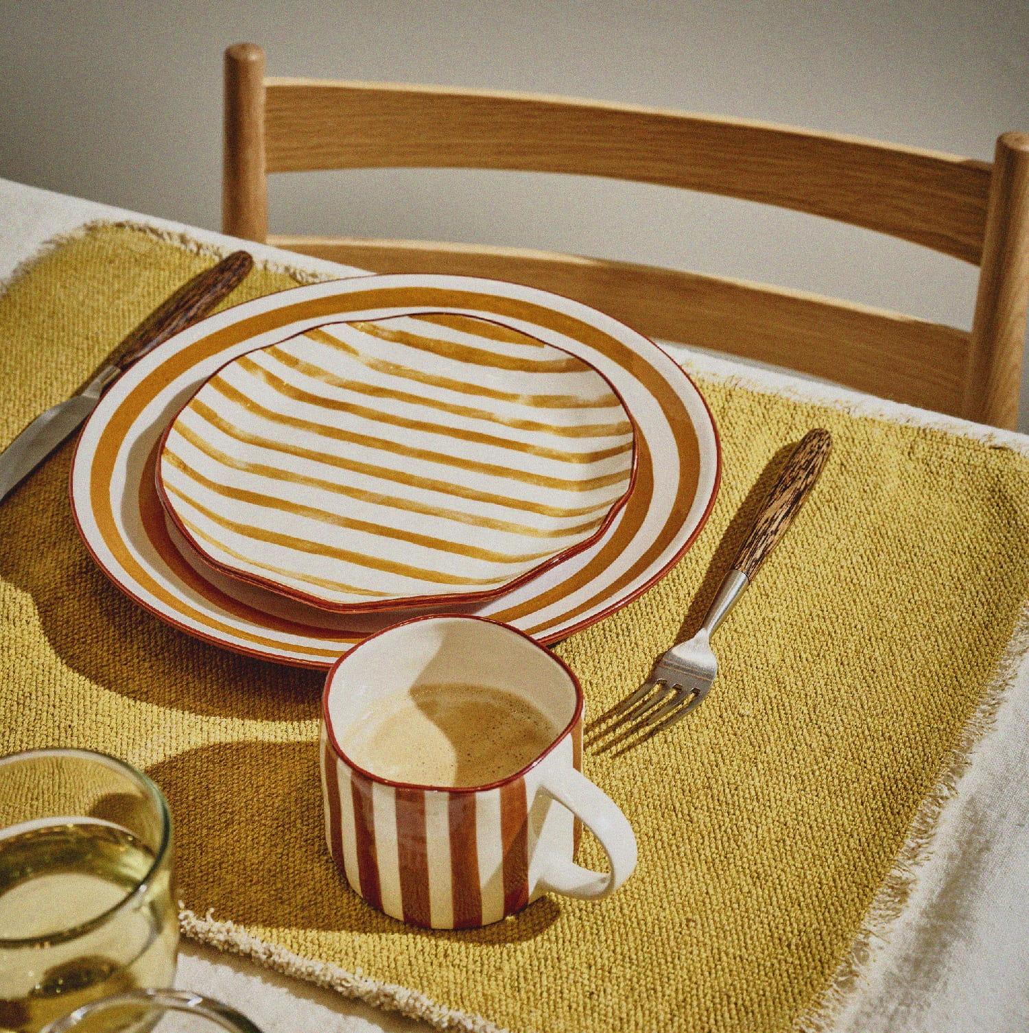 Talerze obiadowe porcelanowe Mykonos Pomax to kwintesencja letniej energii i śródziemnomorskiej lekkości, zamknięta w minimalistycznej, a jednocześnie niezwykle wyrazistej formie. Wykonane z porcelany i ozdobione charakterystycznym szkliwieniem oraz motywem pasków, talerze te przenoszą na stół klimat greckiej wyspy, gdzie jedzenie staje się nie tylko posiłkiem, ale także wspólnym celebrowaniem chwil.