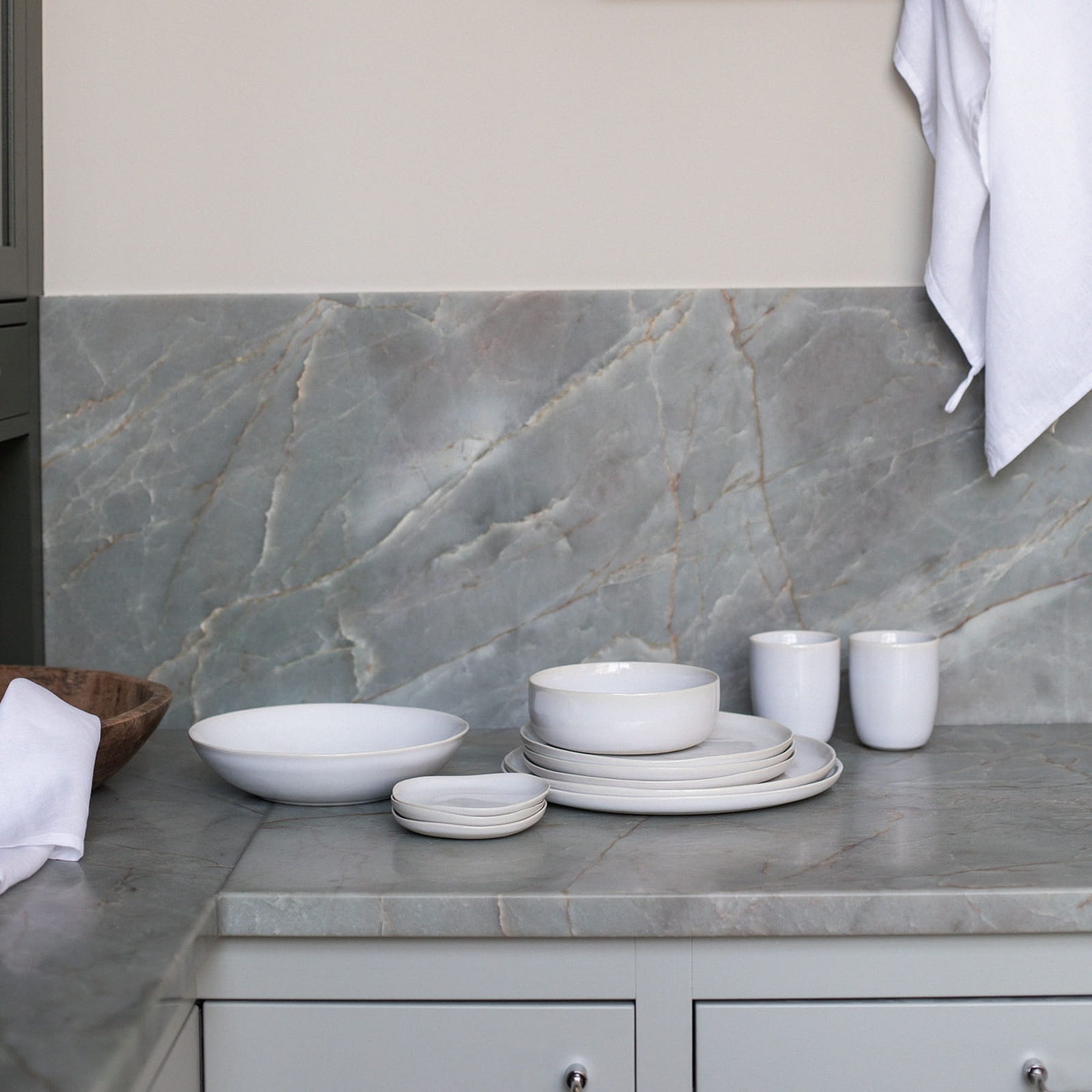 Zestaw 6 talerzy obiadowych Vince od Tell Me More to prawdziwa kwintesencja elegancji, funkcjonalności i ręcznego rzemiosła, która zmienia codzienne posiłki w wyjątkowe doświadczenie kulinarne. Każdy biały talerz z kamionki emanuje minimalistycznym stylem i ponadczasową klasą, idealną do nowoczesnych i klasycznych aranżacji stołu, od rodzinnych obiadów po eleganckie kolacje.