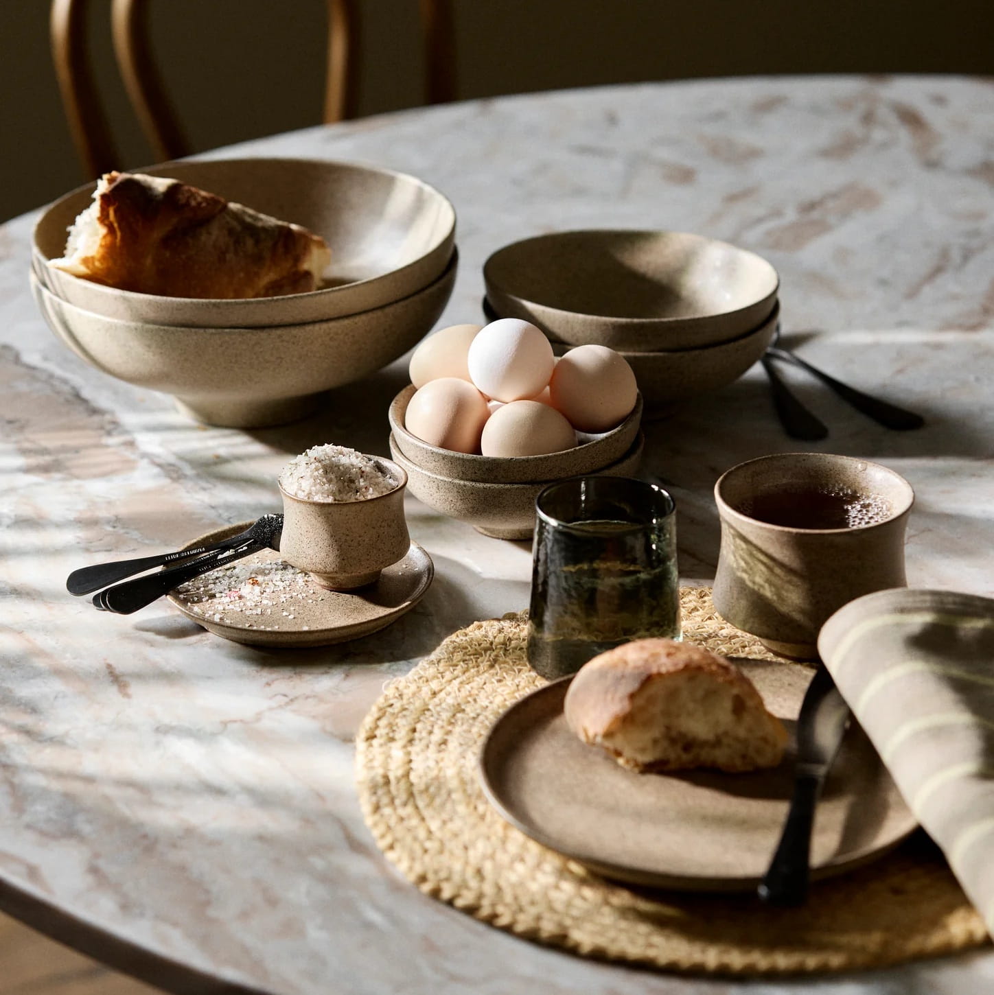Na stole śniadaniowym pełnią rolę talerzy do pieczywa, owoców i kanapek, a przy kolacji elegancko eksponują mniejsze dania, przystawki i dodatki. Dzięki neutralnej, piaskowej kolorystyce talerze z kamionki do jadalni doskonale wpisują się w aranżacje japandi, skandynawskie, nowoczesne i organiczne, naturalnie łącząc się z drewnem, lnem i jasną ceramiką.