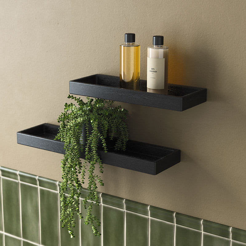 Nowoczesna półka na ścianę Sleek Shelf wykonana jest z drewna bukowego. Estetycznie i elegancko wykończona na czarno.
