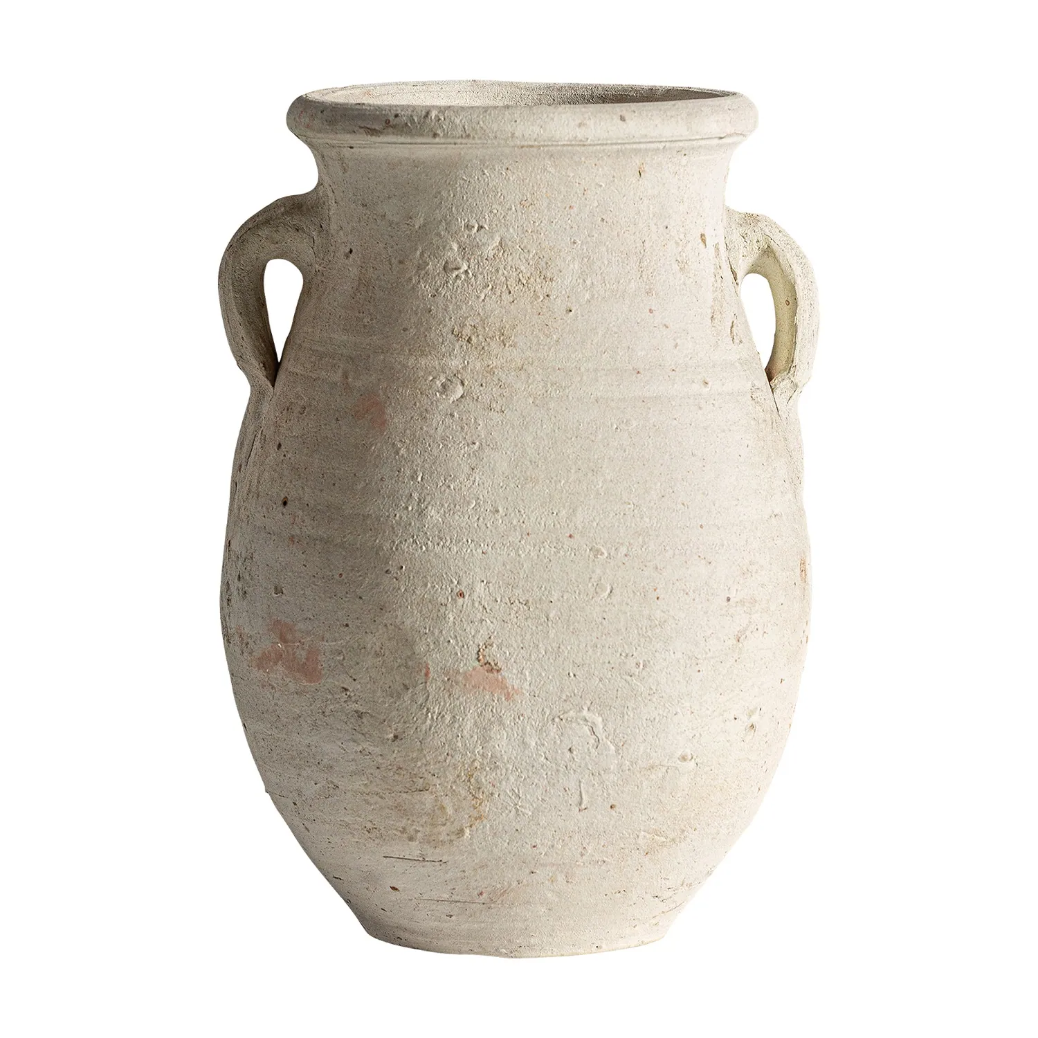 Wazon gliniany z efektem postarzania, z uchwytami Kansara od Vical to stylowy element dekoracyjny, który łączy w sobie surowość naturalnych materiałów i artystyczny charakter rzemieślniczego wykonania.