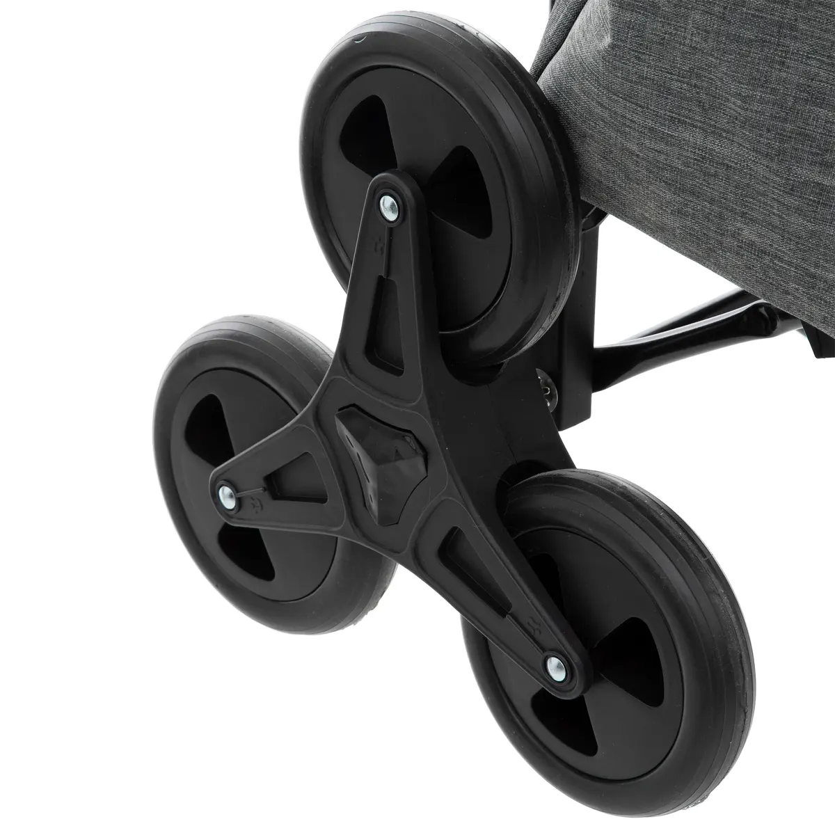 Innowacyjny system kółek na schody - Wyposażony w sześć kółek (po trzy na każdą stronę), które umożliwiają łatwe i bezpieczne pokonywanie schodów oraz innych przeszkód terenowych, w tym krawężników. Dzięki temu, wózek Nomad 5five jest idealnym rozwiązaniem dla osób mieszkających w budynkach bez wind, gdzie codzienne wnoszenie zakupów na piętro staje się znacznie prostsze.