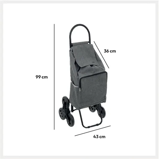 Wózek na zakupy z kółkami na schody Nomad 5five to nowoczesne i funkcjonalne rozwiązanie, idealne dla osób ceniących wygodę i praktyczność podczas codziennych zakupów. Wyposażony w innowacyjny system sześciu kółek (po trzy na stronie), specjalnie zaprojektowany do łatwego pokonywania schodów, krawężników, Nomad 5five wyróżnia się wśród tradycyjnych wózków zakupowych.
