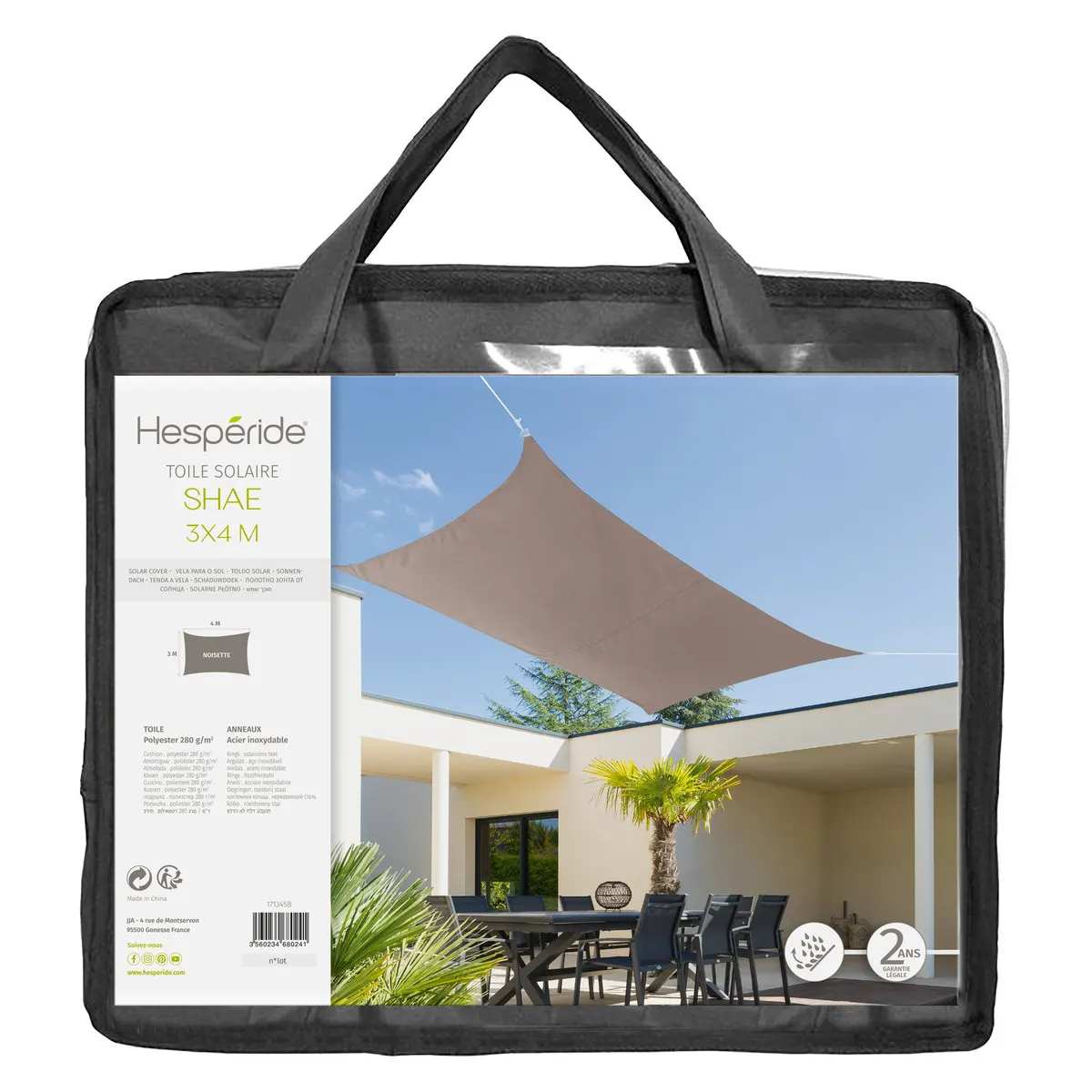Żagiel przeciwsłoneczny Shae, marki Hesperide (specjalizującej się w produkcji mebli i akcesoriów ogrodowych) to praktyczne wyposażenie tarasu lub ogrodu, aby stworzyć zacieniony obszar i cieszyć się przestrzenią na świeżym powietrzu, ochronić od słońca i promieniowania UV.